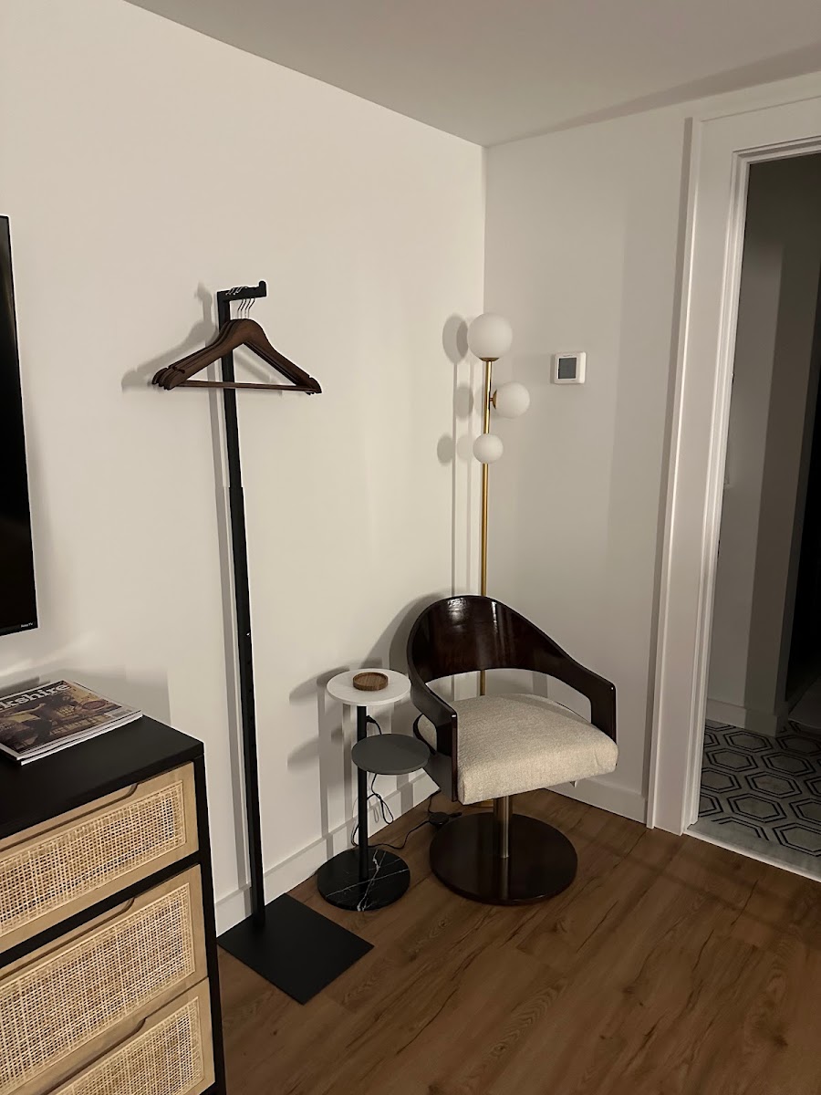 I had a great stay. Please read the most recent reviews as it was completely renovated and maybe under a new owner and/or management. 1) King sized bed - very comfortable with 4 large pillows and a cute decorative Berkshires pillow; the linens were very soft and the blankets were very warm 2) 58" TV - Hulu was logged in with live channels available; very nice 3) Bathroom with modern, high end fixtures and ample lighting - shower pressure and temperature had no issues; towels were extremely soft and there were more than enough towels 4) Fridge with two water bottles and Smeg coffee maker - I had the water, but don't drink coffee so didn't use it, but perhaps some tea bags might be nice 5) Plenty of room to store clothes, hang coats, shirts, etc. 6) Nice little corner reading nook with a lamp and side table for a mug 7) Nice desk with a chair and hi speed wifi 8) dual purpose AC/heater with thermostat 9) white noise machine 10) USB outlets 11) Cute little backyard porch space with 2 chairs 12) Check in and check out was breeze and I had no safety concerns